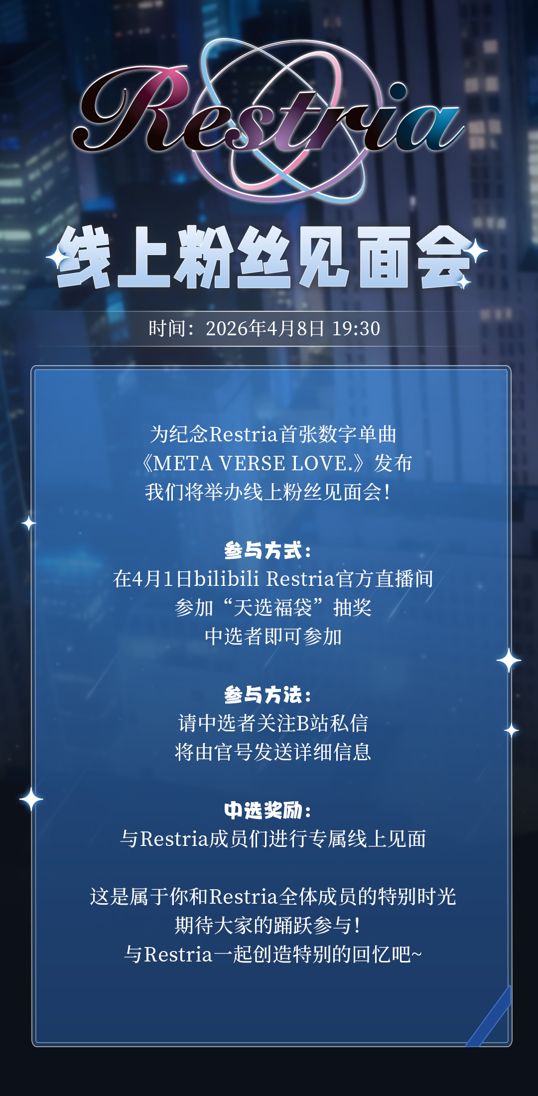 4月1日bilibili Restria公式配信内「天选福袋」抽選対象『META VERSE LOVE.』リリース記念オンラインファンミーティング
